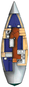 The hull is hand-laid and molded as a single unit. It is cored with end-grain balsa, tapered to solid glass in any high-stress areas (engine bed, mast step, shroud terminals, thru-hulls and keel sections). The deck is of the same construction with excellent molded-in non-skid on all flat surfaces; it is joined to the hull with a bedded, mechanically fastened lap joint that has proven to be strong and dry.